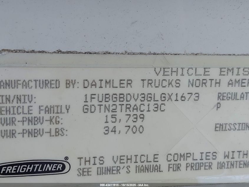 • 1FUBGBDV3GLGX1673