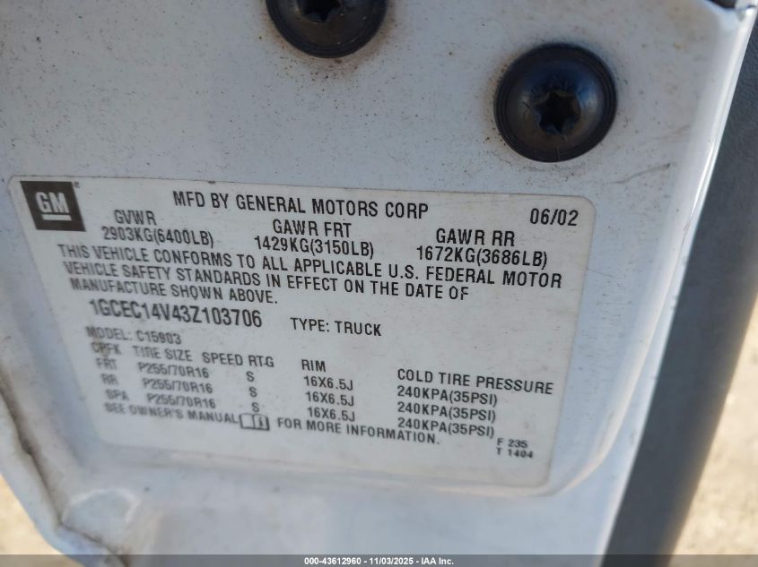 • 1GCEC14V43Z103706