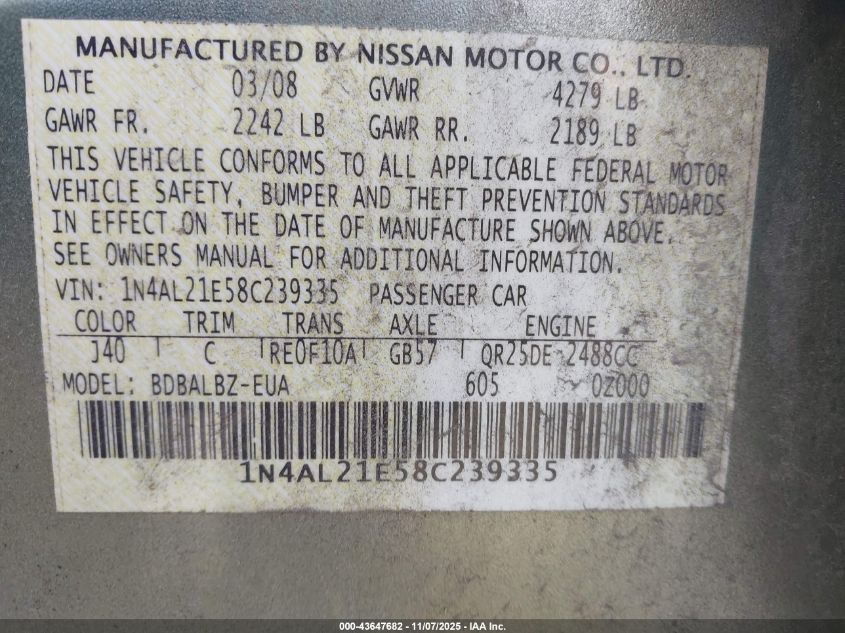 2008 NISSAN ALTIMA 2.5 S for Sale in York Springs, PA