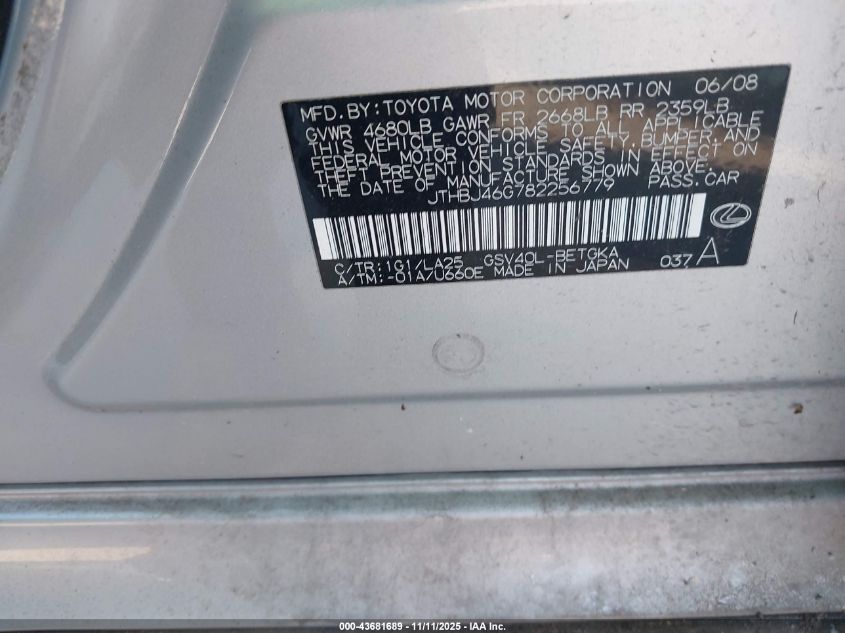 • JTHBJ46G782256779