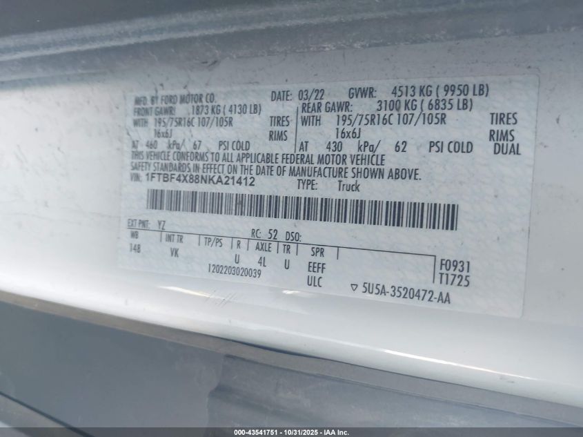 • 1FTBF4X88NKA21412