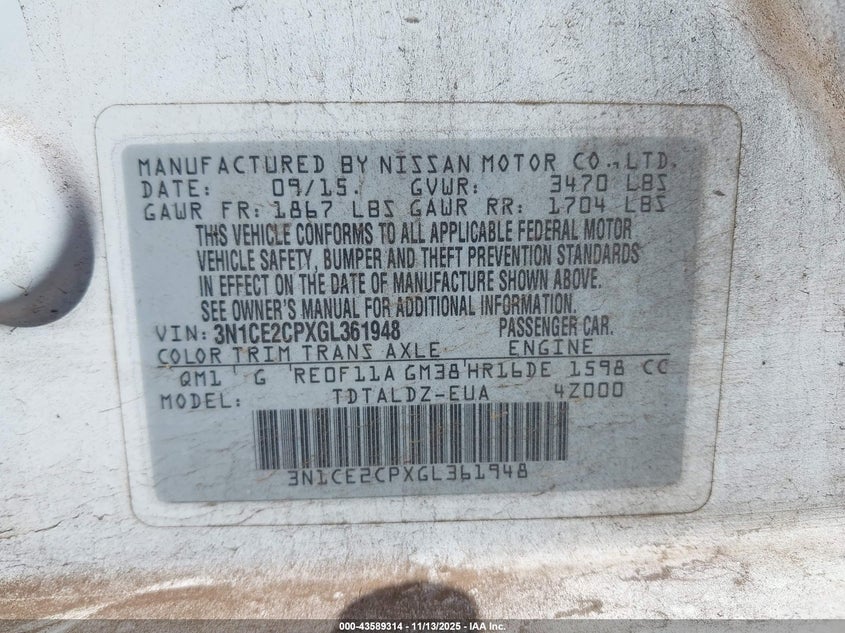 2016 NISSAN VERSA NOTE S (SR)/S PLUS/SL/SR/SV for Sale in Kapolei, HI