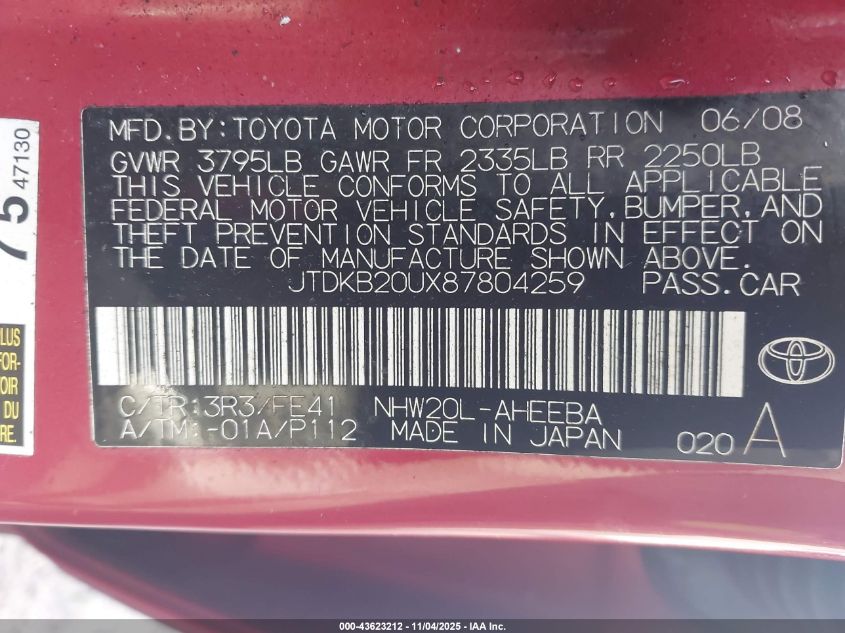 • JTDKB20UX87804259