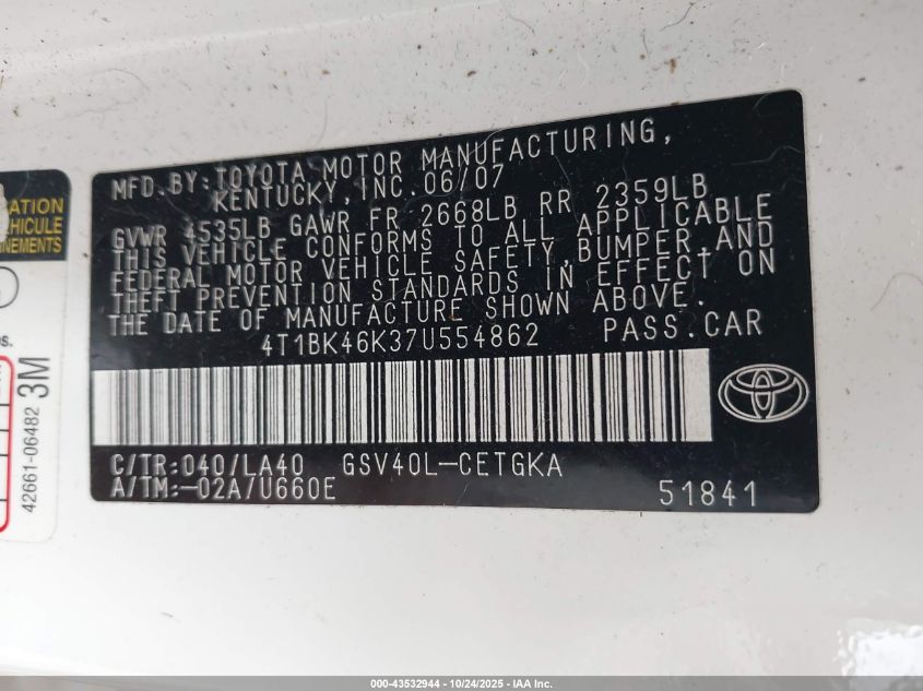 • 4T1BK46K37U554862