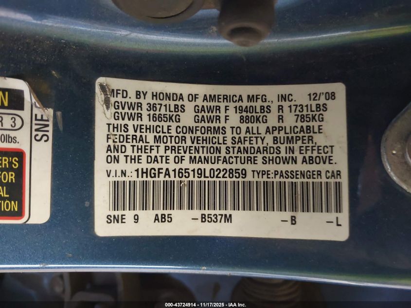 • 1HGFA16519L022859