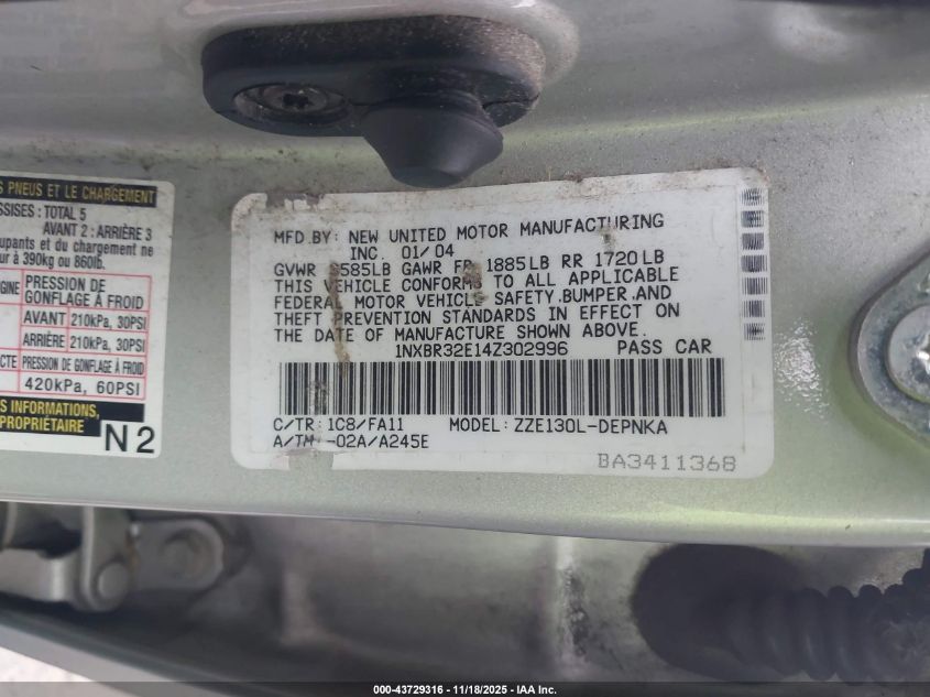 • 1NXBR32E14Z302996