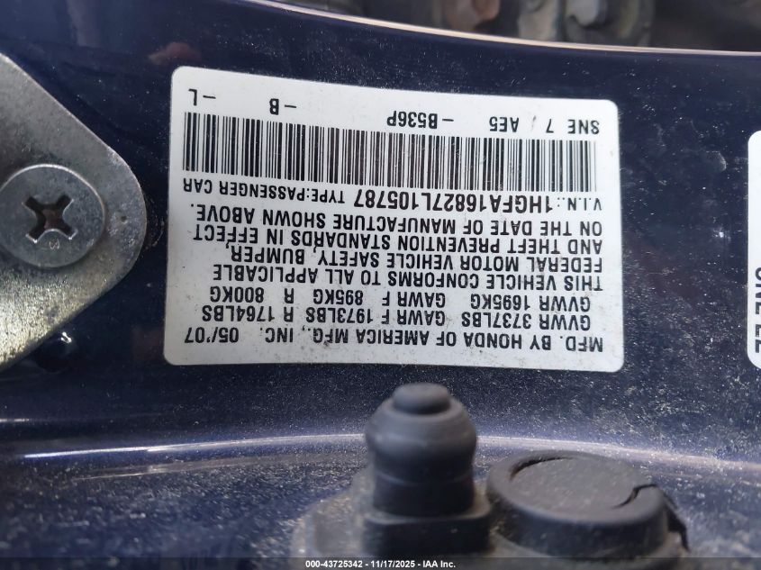 • 1HGFA16827L105787