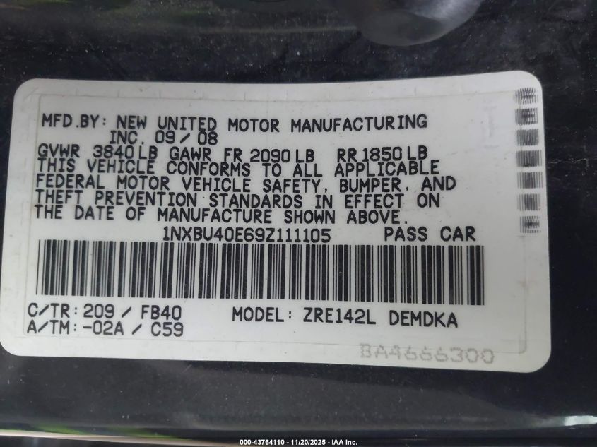 • 1NXBU40E69Z111105