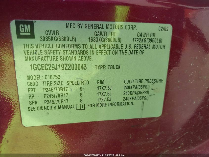 • 1GCEC29J19Z200043