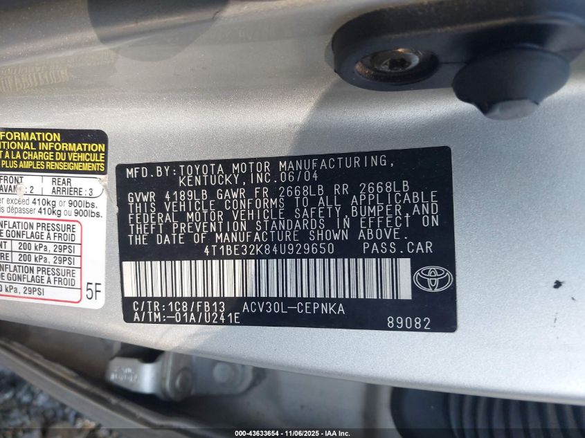 • 4T1BE32K84U929650