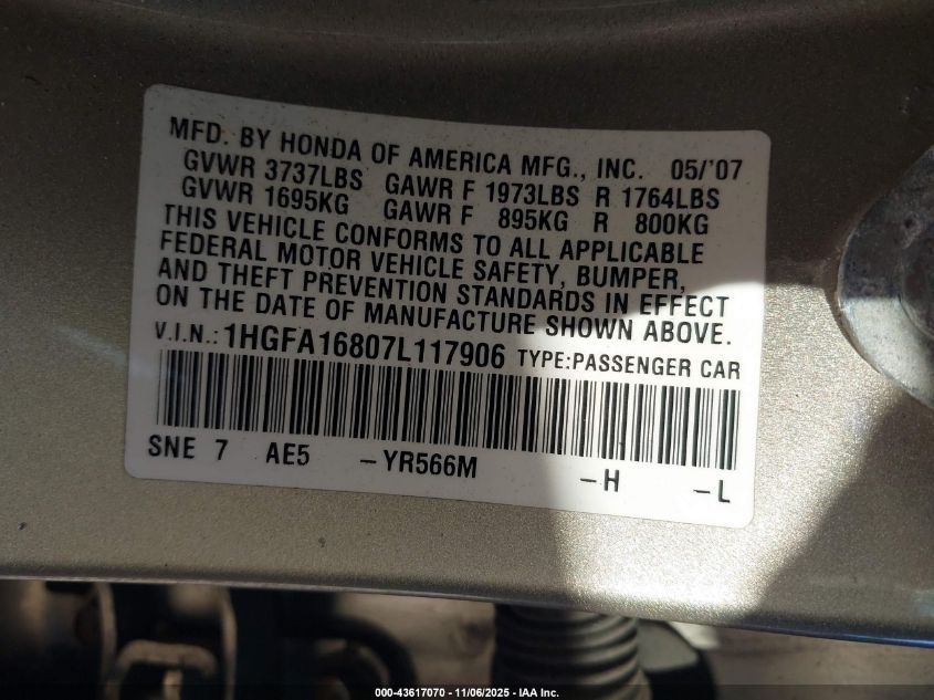 • 1HGFA16807L117906