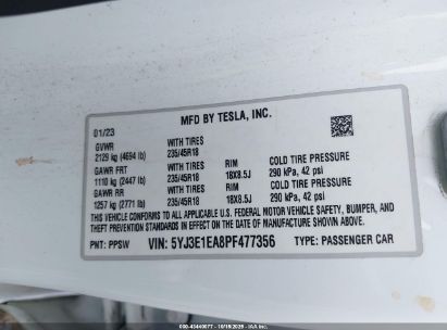 2023 TESLA MODEL 3 REAR-WHEEL DRIVE for Sale in Electric Vehicle Auctions, None