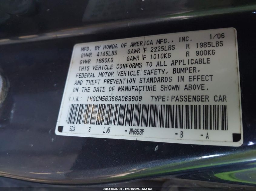 • 1HGCM56366A069909