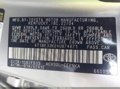 2004 TOYOTA CAMRY LE for Sale in East Taunton, MA
