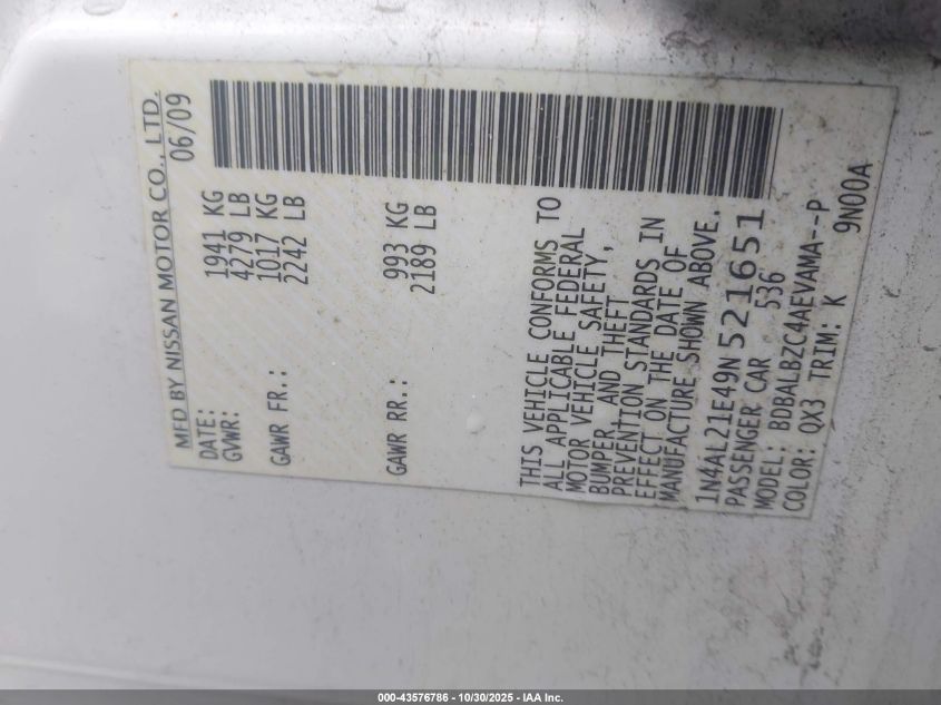 2009 NISSAN ALTIMA 2.5 S for Sale in Lorain, OH