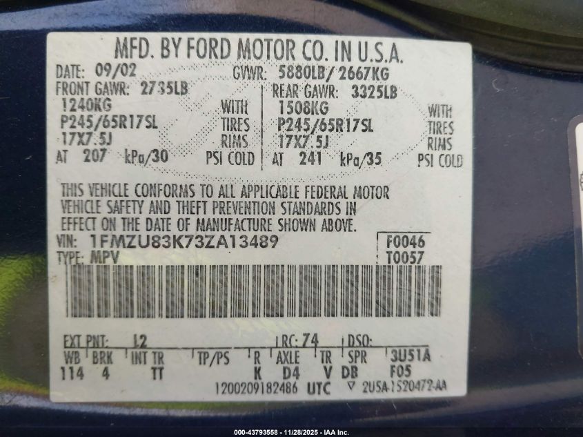 • 1FMZU83K73ZA13489