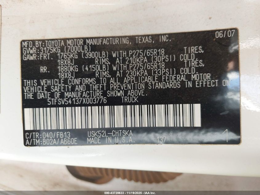 • 5TFSV54137X003776