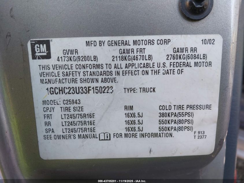 • 1GCHC23U33F150223