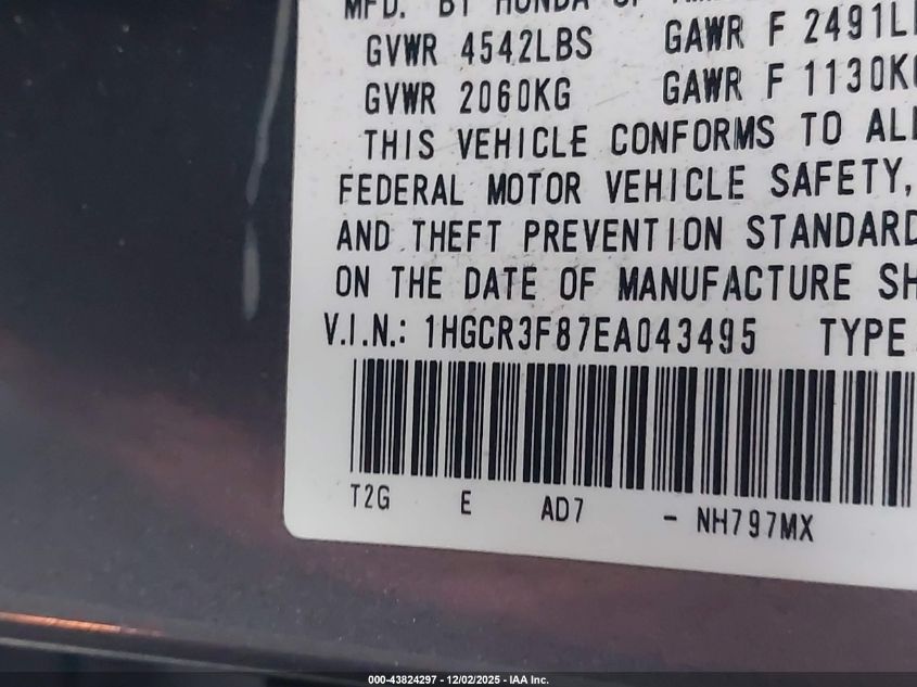 • 1HGCR3F87EA043495