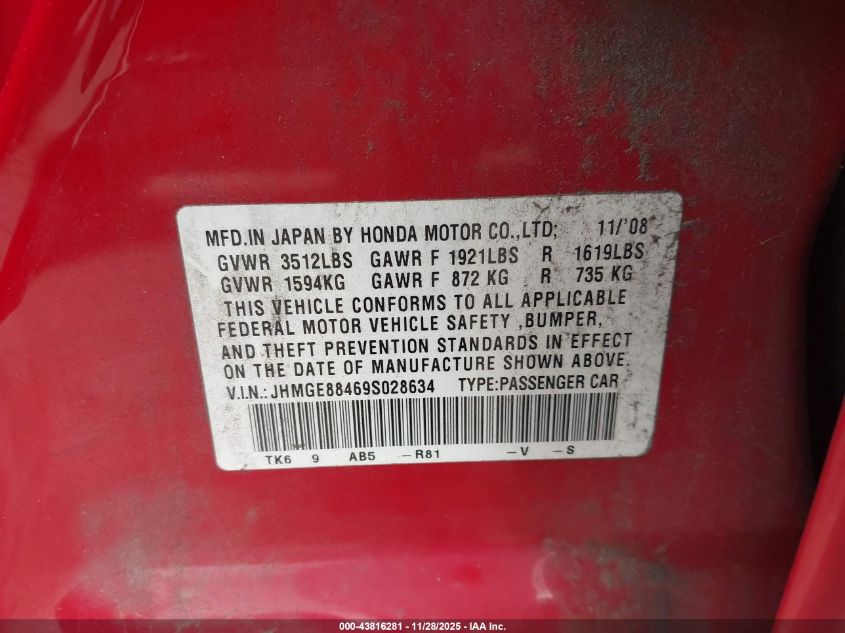 • JHMGE88469S028634