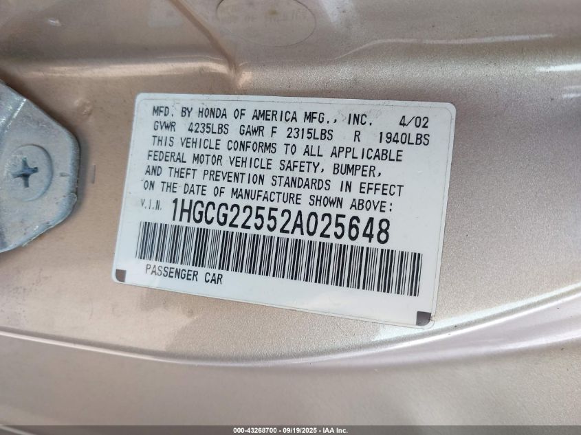 • 1HGCG22552A025648