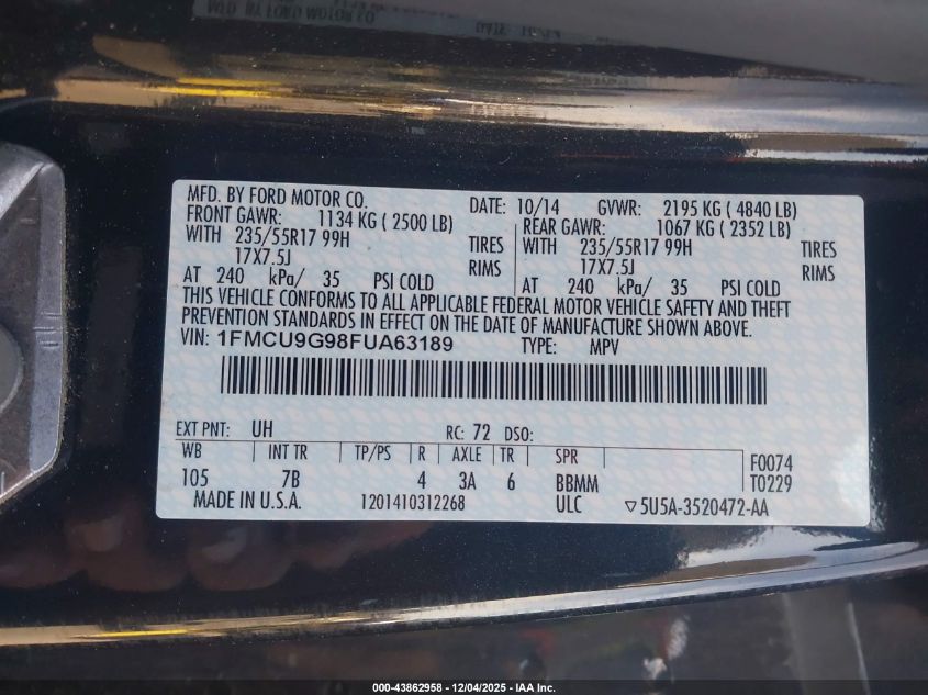 • 1FMCU9G98FUA63189