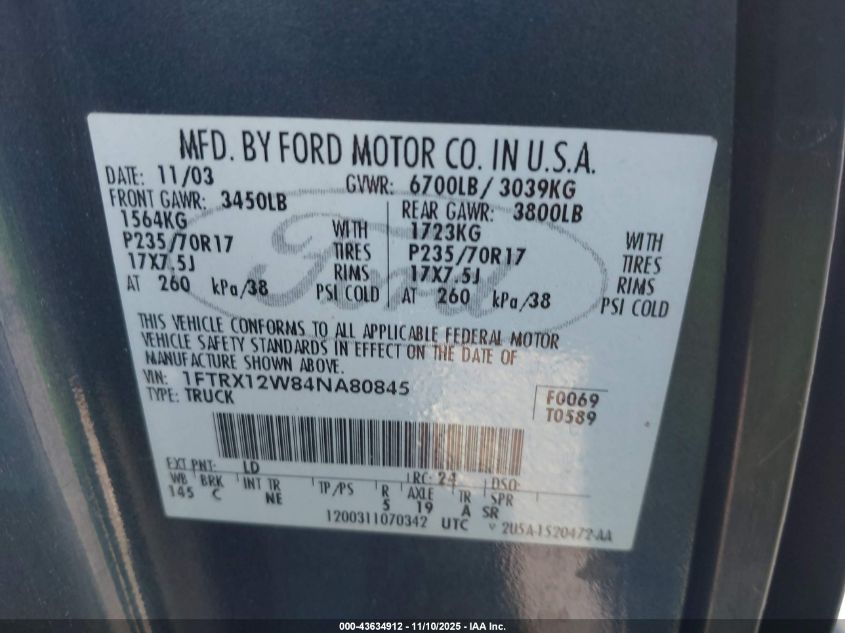 • 1FTRX12W84NA80845