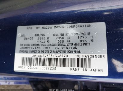 2005 MAZDA MAZDA3 S for Sale in Rancho Cordova, CA