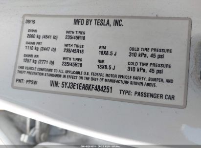 2019 TESLA MODEL 3 LONG RANGE/MID RANGE/STANDARD RANGE/STANDARD RANGE PLUS for Sale in Electric Vehicle Auctions, None