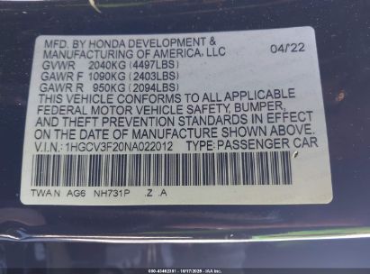 2022 HONDA ACCORD HYBRID SPORT for Sale in Rancho Cordova, CA