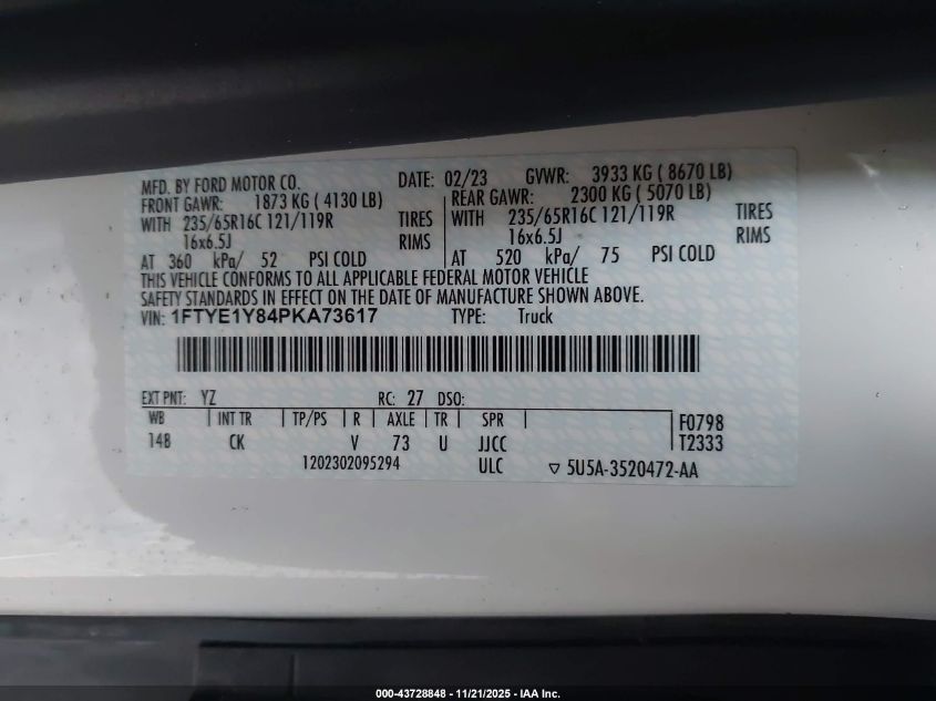 • 1FTYE1Y84PKA73617