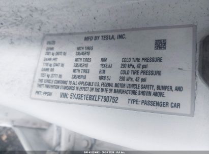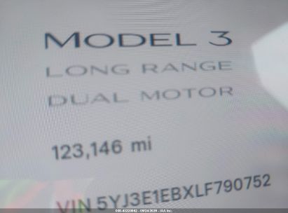 2020 TESLA MODEL 3 LONG RANGE DUAL MOTOR ALL-WHEEL DRIVE for Sale in Electric Vehicle Auctions, None