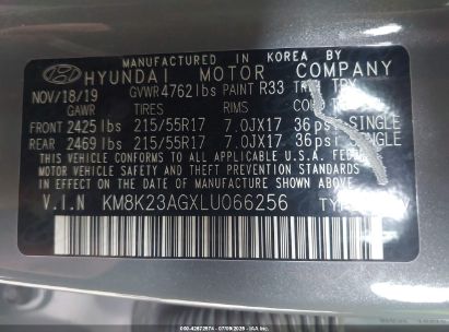 2020 HYUNDAI KONA ELECTRIC SEL for Sale in Electric Vehicle Auctions, None