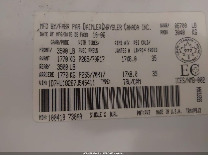 • 1D7HU18287J545411