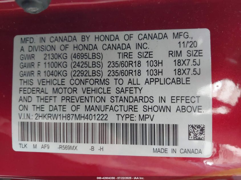 • 2HKRW1H87MH401222