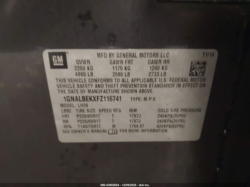 • 1GNALBEKXFZ116741