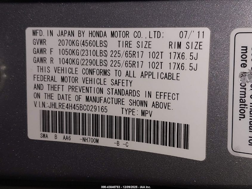 • JHLRE4H45BC029165