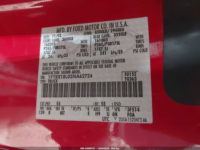 • 1FTRX18L03NA62724