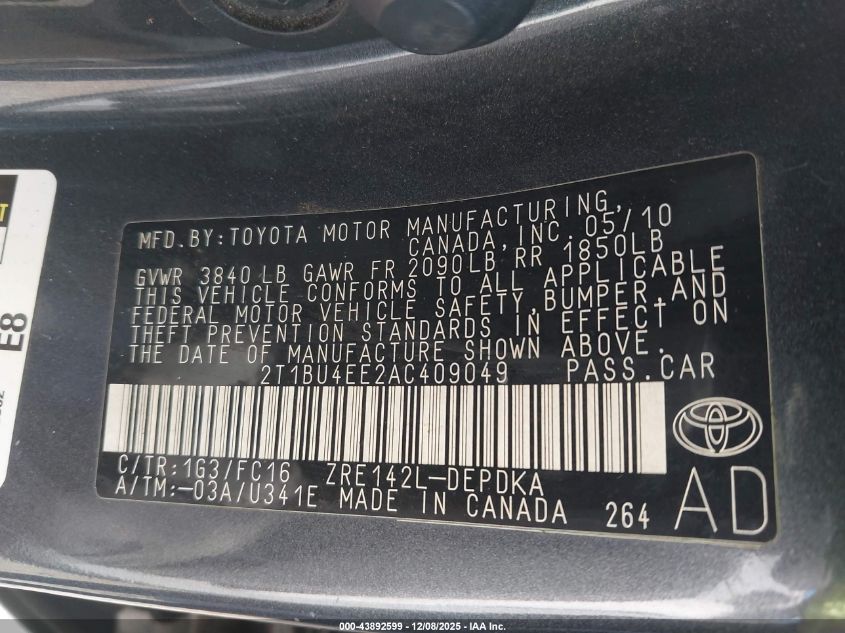 • 2T1BU4EE2AC409049