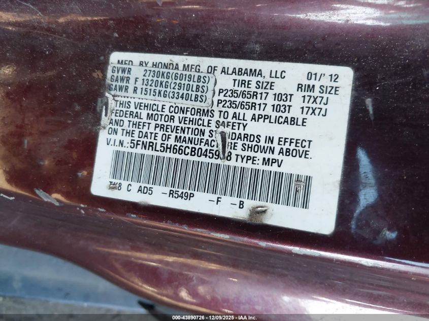• 5FNRL5H66CB045938