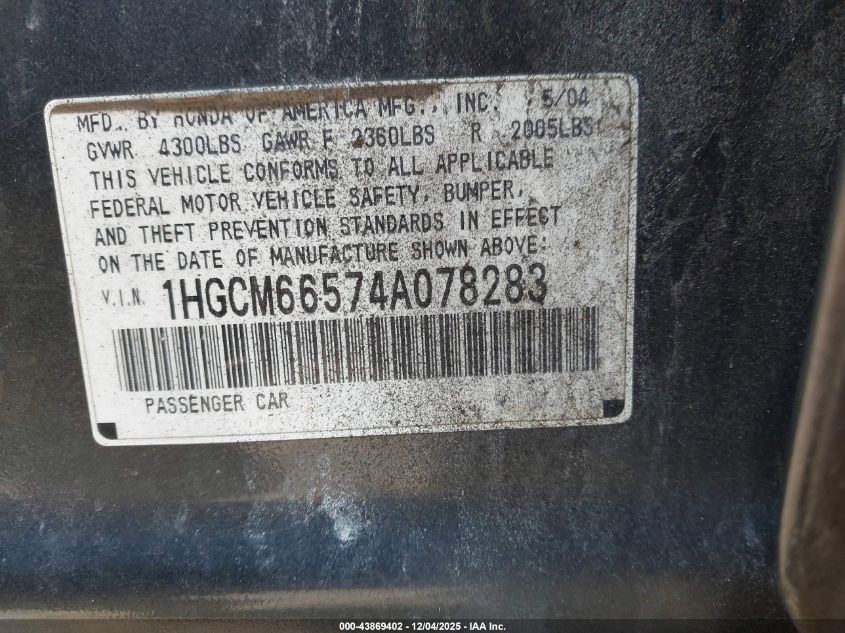 • 1HGCM66574A078283