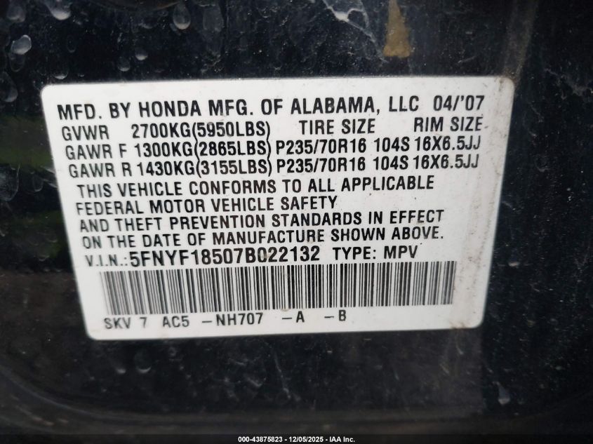 • 5FNYF18507B022132