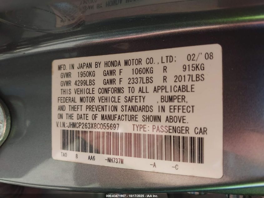 • JHMCP263X8C055697