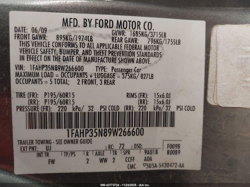 • 1FAHP35N89W266600