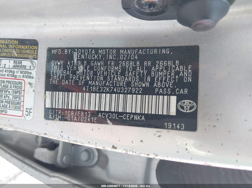 • 4T1BE32K74U327922