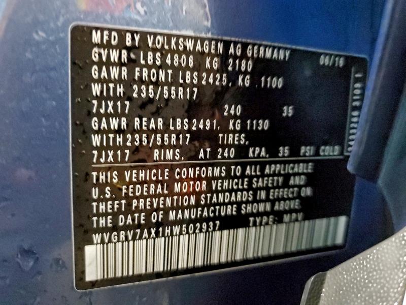 • WVGRV7AX1HW502937