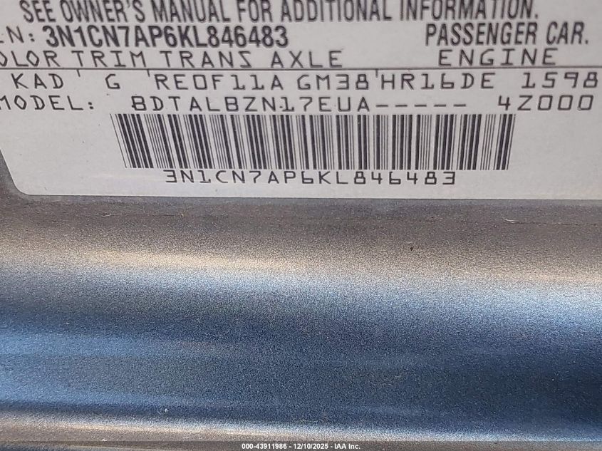 • 3N1CN7AP6KL846483