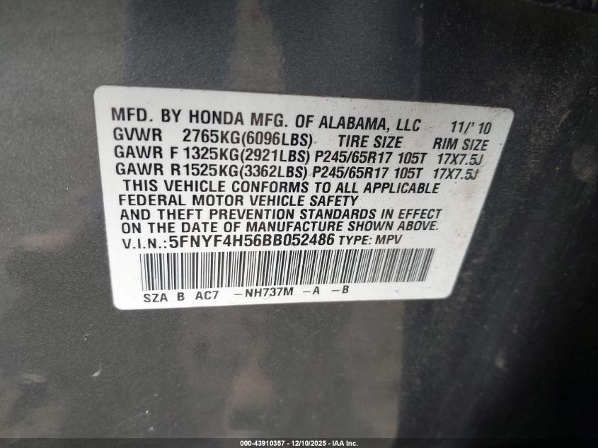 • 5FNYF4H56BB052486