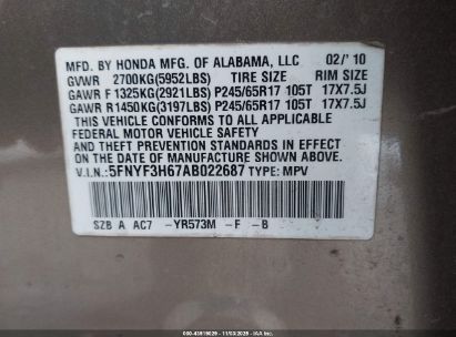 • 5FNYF3H67AB022687