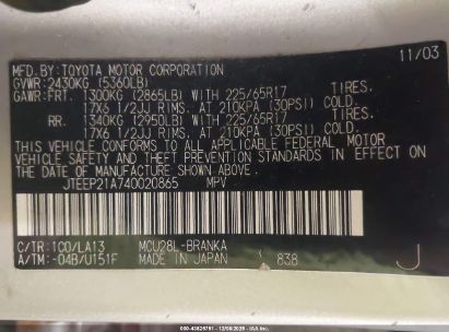 2004 TOYOTA HIGHLANDER LIMITED V6 for Sale in Appleton, WI